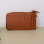 Card Wallet with Zipper DIMENSIONS: 3.5”x 4.5”x .5” Details: Made of 100% Cow Hide Leather With snap button closure With lining With silver zipper pocket compartment With 2 bill slots...
