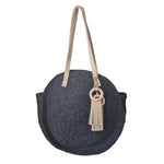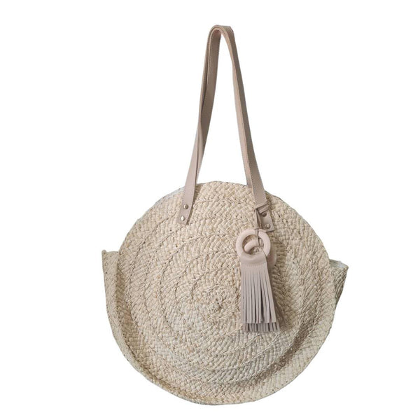 Native tote bags made of Raffia with vegan leather straps are perfect for both beach trips and urban outings. It's spacious but lightweight, and comes in versatile colors.