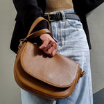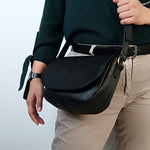 Our stylish sling, Luna, works well in cityscapes and travels. The shape and size are just right for keeping your necessities in place.