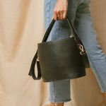 A smaller version of our classic bucket bag, the Sadie Mini Bucket is more compact in size and more refined in style. While it embraces a modern silhouette that takes the shape of a pail or bucket, it retains classic features such as a top handle, a detachable strap, and a center compartment to meet your daily demands.